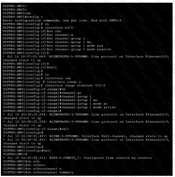 1. Ensure that port channel Po1 between DISTRO-SW01 and DISTRO-SW02 is operational using the LACP protocol. Configuration changes for this task must be made on DISTRO-SW01.