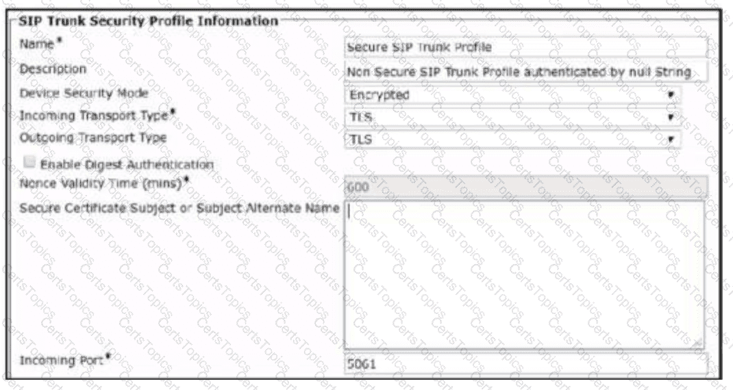 An administrator configures a secure SIP trunk on Cisco UCM.