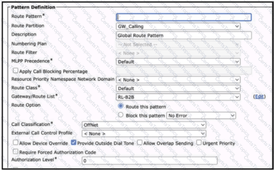 An engineer with ID012345678 must build an international dial plan in Cisco UCM. Which action is taken when building a variable-length route pattern?