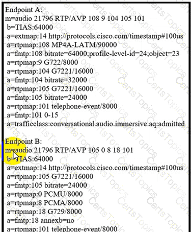 Refer to the exhibit. Endpoint A calls endpoint B. What is the only audio codec that is used for the call?