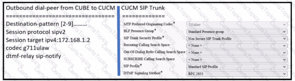 Refer to the exhibit. Calls to Cisco Unity Connection are failing across Cisco Unified Border Element when callers try to select a menu prompt Why is this happening and how is it fixed?