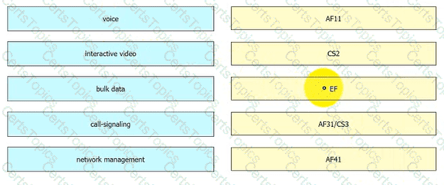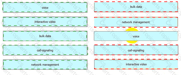 According to the QoS Baseline Model, drag and drop the applications from the left onto the Per-Hop Behavior values on the right.
