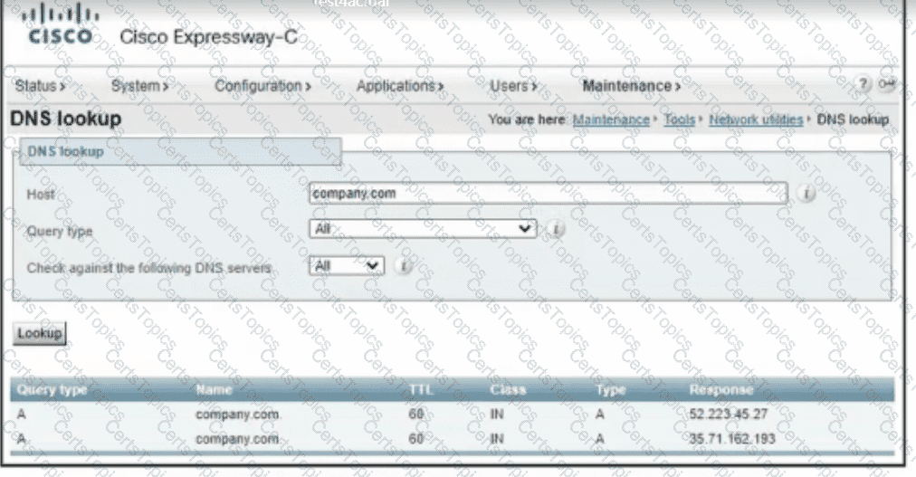 engineer runs DNS lookup tool in Cisco Expressway-C to troubleshoot tie What IS me cause of the issue?