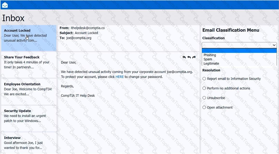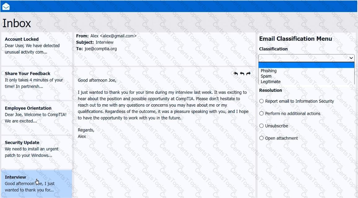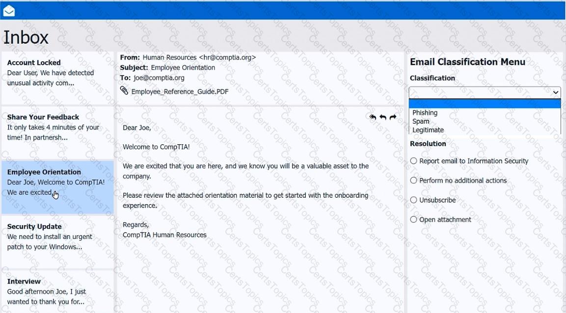 As a corporate technician, you are asked to evaluate several suspect email messages on a client ' s computer. Corporate policy requires the following: