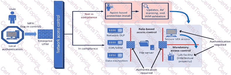 A company plans to implement a research facility with Intellectual property data that should be protected The following is the security diagram proposed by the security architect