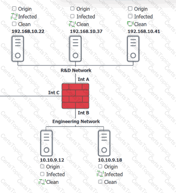 Click on each host and firewall. Review all logs to determine which host originated the Infecton and then deny each remaining hosts clean or infected.