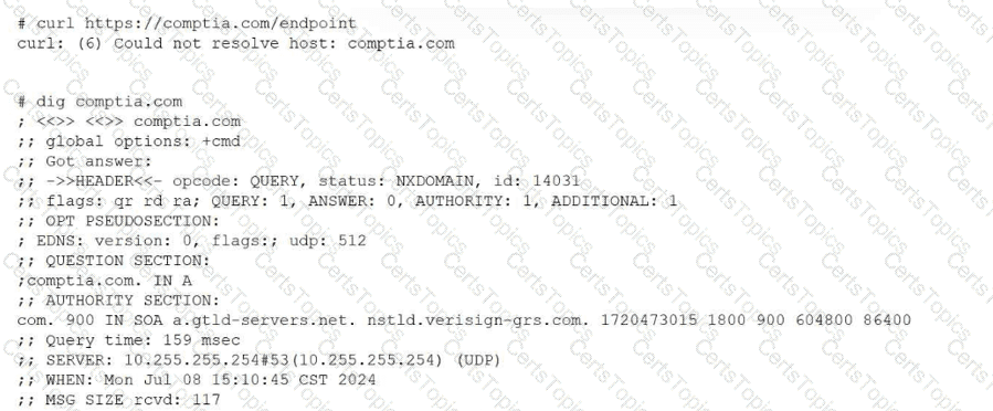 A systems administrator is having issues with a third-party API endpoint. The administrator receives the following output: