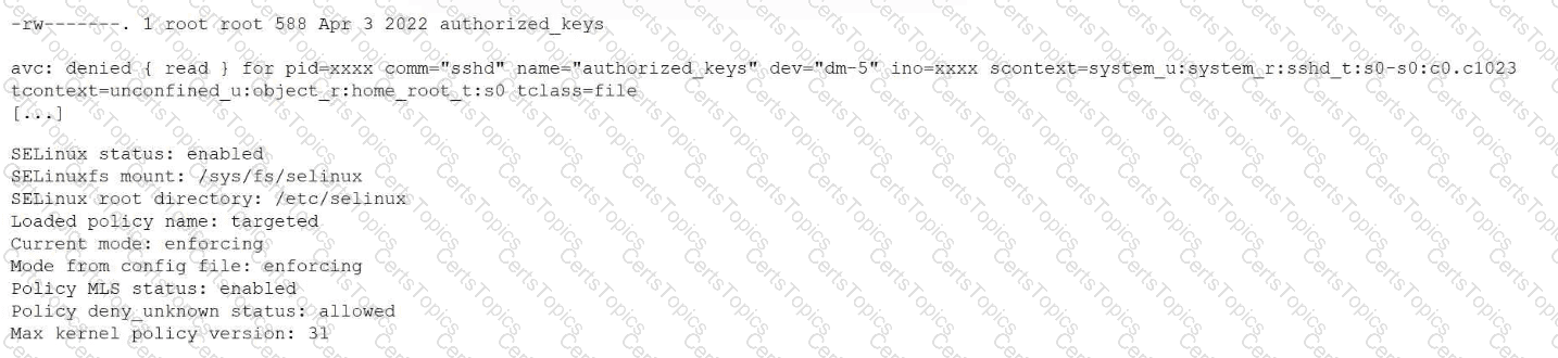 A Linux administrator just finished setting up passwordless SSH authentication between two nodes. However, upon test validation, the remote host prompts for a password. Given the following logs: