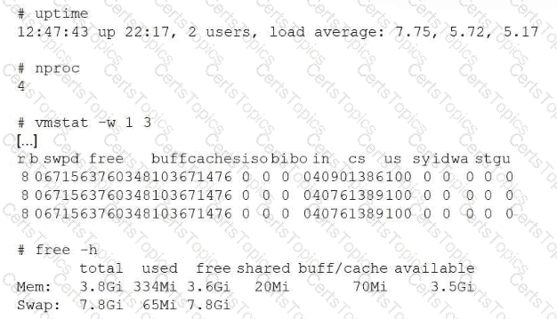 A Linux administrator receives reports that an application hosted in a system is not completing tasks in the allocated time. The administrator connects to the system and obtains the following details: