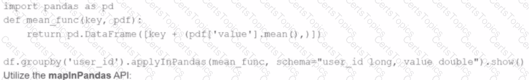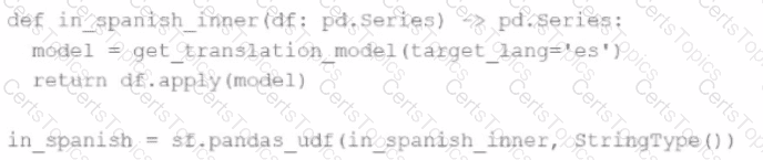 An MLOps engineer is building a Pandas UDF that applies a language model that translates English strings into Spanish. The initial code is loading the model on every call to the UDF, which is hurting the performance of the data pipeline.