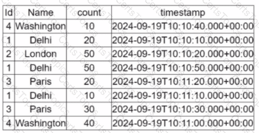 (Referring to the table image: it has columns Id, Name, count, and timestamp.)