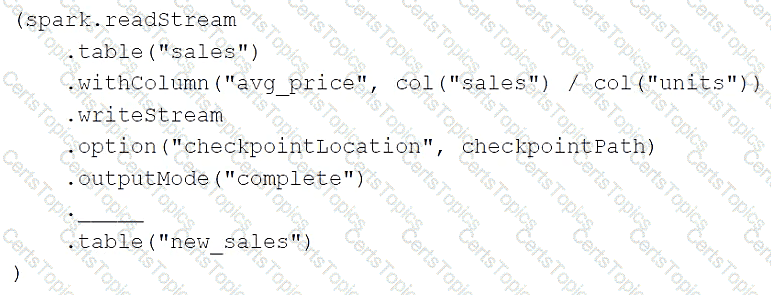 A data engineer has configured a Structured Streaming job to read from a table, manipulate the data, and then perform a streaming write into a new table.