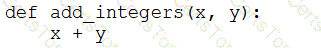 A data engineer that is new to using Python needs to create a Python function to add two integers together and return the sum?