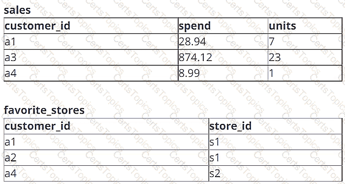 A data engineer is working with two tables. Each of these tables is displayed below in its entirety.
