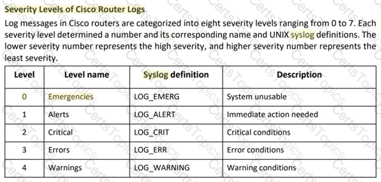 The Syslog message severity levels are labelled from level 0 to level 7.