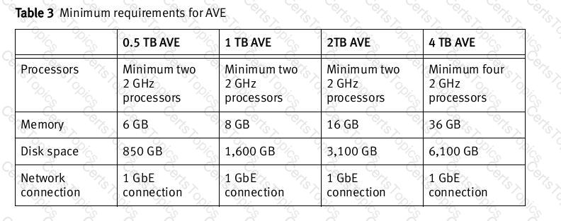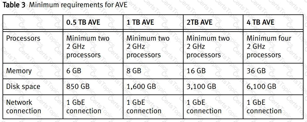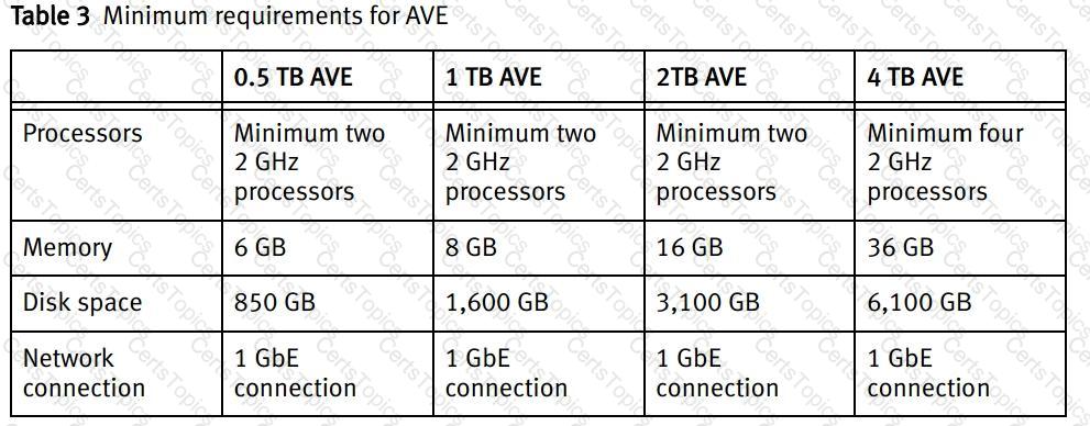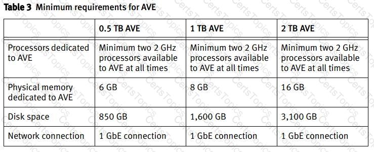 What is the physical memory requirement for an Dell AVE with 1 TB capacity?