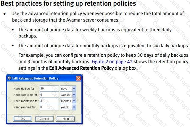 What is an Dell Avamar best practice for setting backup retention policies for a new backup environment?