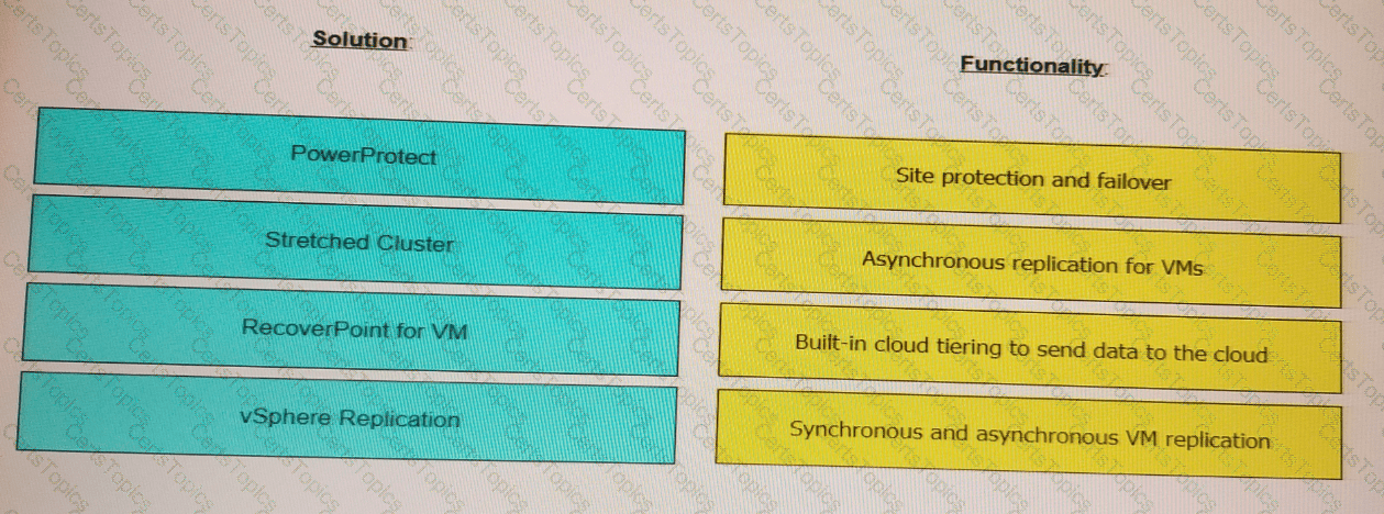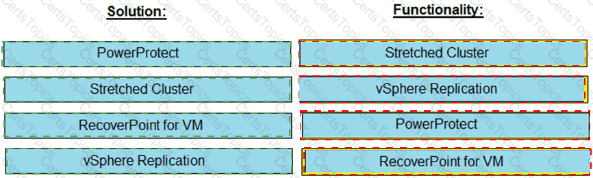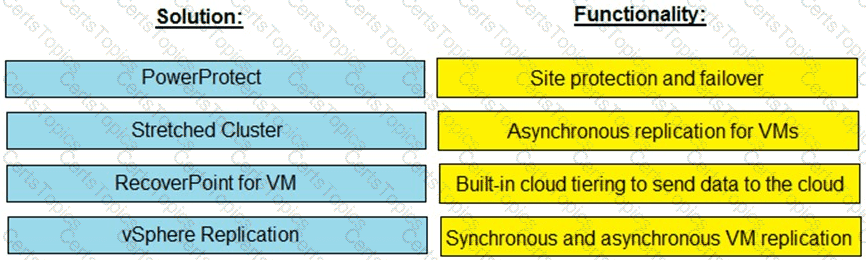 Match each VxRail, data protection solution with its functionality.