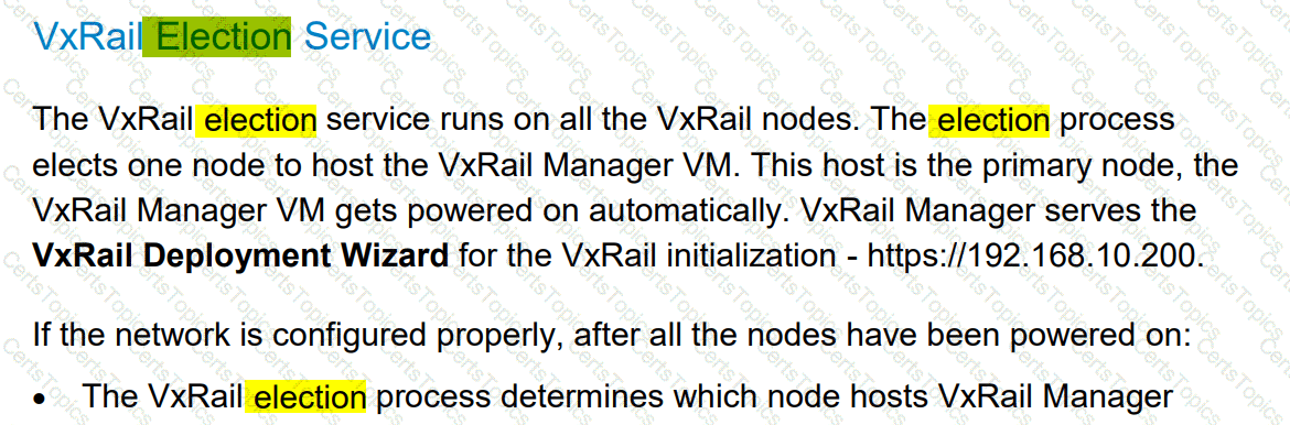 Which service determines the primary node after powering on the VxRail nodes during the deployment of a VxRail cluster?