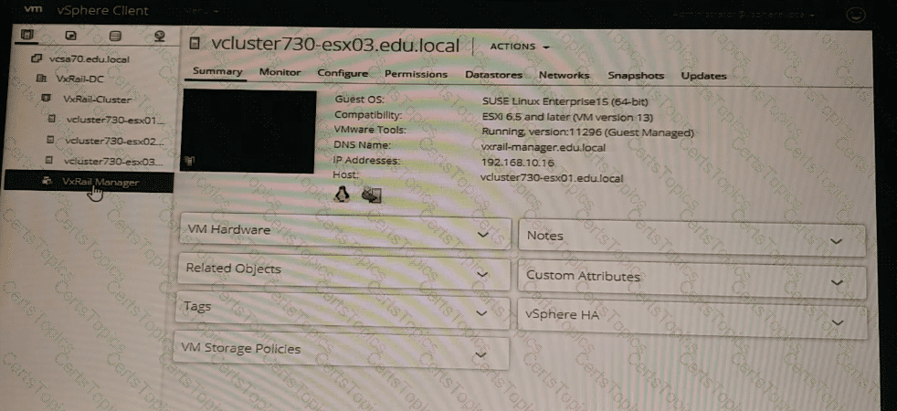 A VxRail Manager VM must be configured as follows: