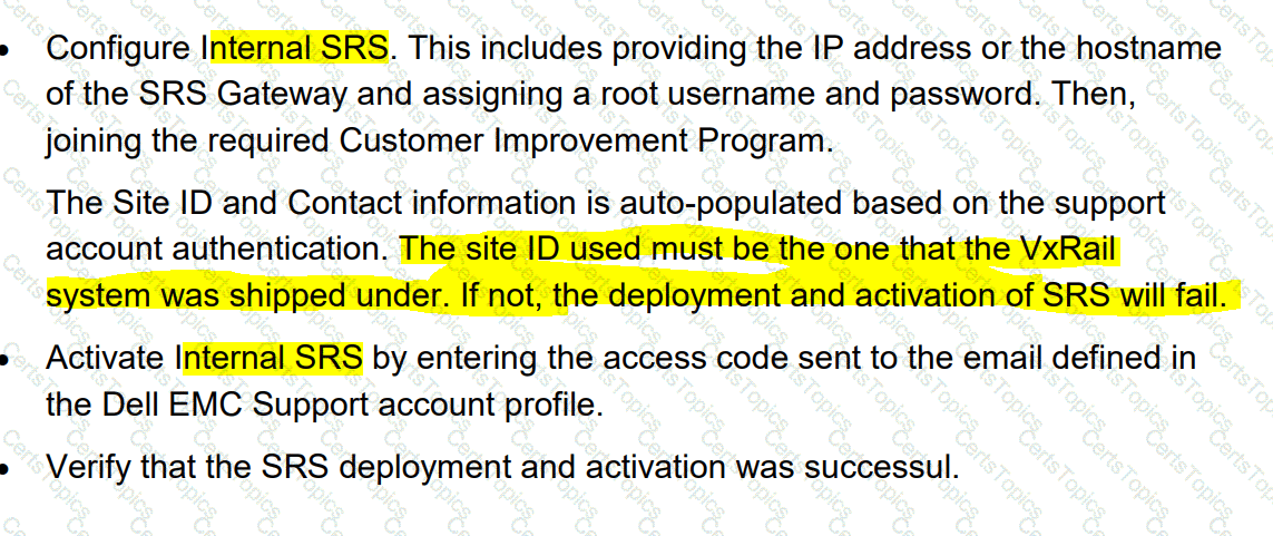 During the activation of Internal SRS, the implementation engineer receives a message that the deployment has failed What is a possible cause?
