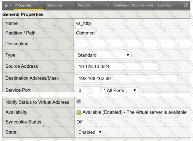 Refer to the exhibit and the virtual server configuration provided below: