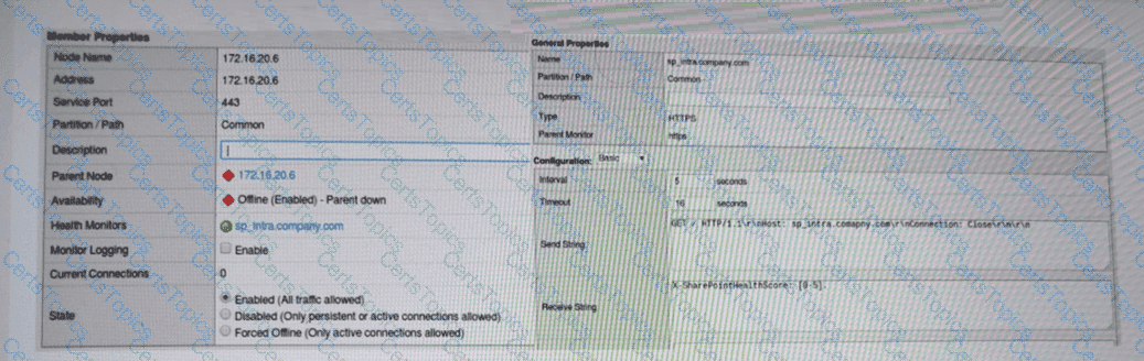 A BIG-IP Administrator notices that one of the servers that runs an application isNOTreceiving any traffic. The BIG-IP Administrator examines the configuration status of the application and observes the displayed monitor configuration and affected pool member status.