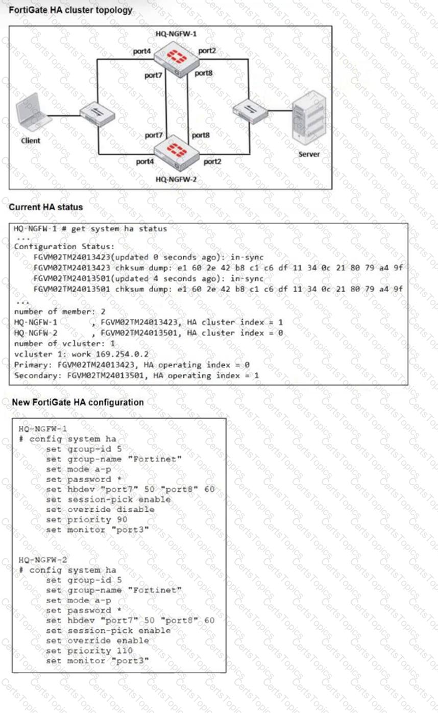 Based on the current HA status, an administrator updates the override and priority parameters on HQ-NGFW-1 and HQ-NGFW-2 as shown in the exhibit.