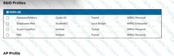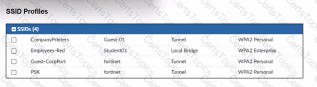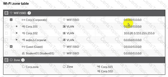 Review the exhibits to analyze the network topology, SSID settings, and firewall policies.