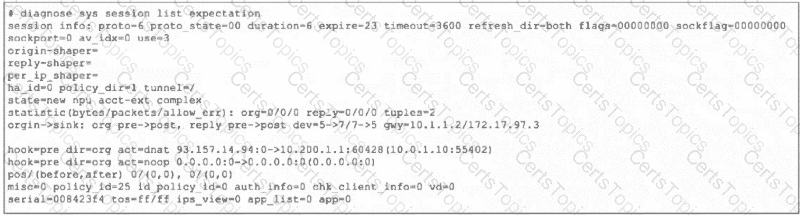Refer to the exhibits, which show the configuration on FortiGate and partial internet session information from a user on the internal network.
