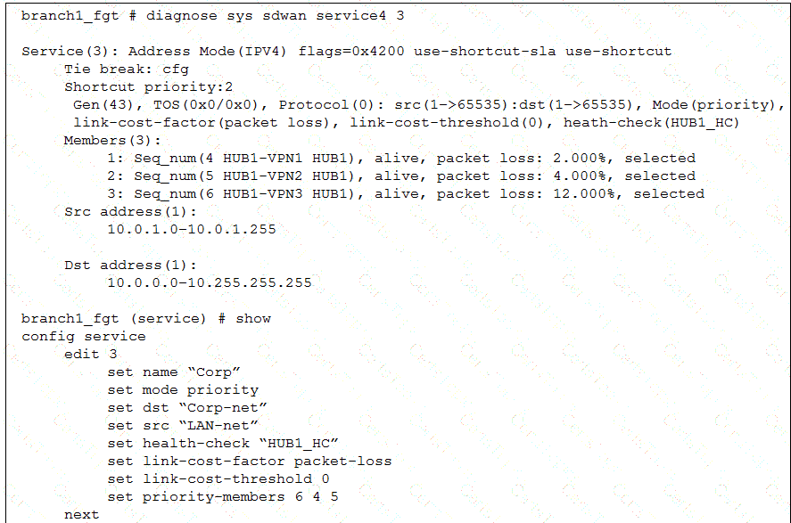 Based on the exhibit, which change in the measured packet loss will make HUB1-VPN3 the new preferred member? (Choose one answer)