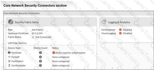 The Core Network Security Connectors page of the FortiGate-2 device is shown. Which statement is correct? (Choose one answer)