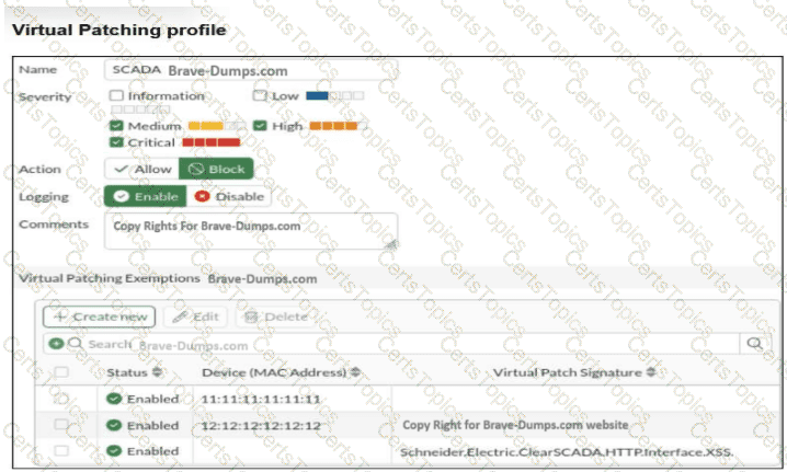 A Virtual Patching profile is shown. You have recently updated your SCADA system and would like to apply the SCADA virtual patching profile. Which two statements about this profile are correct? (Choose two answers)