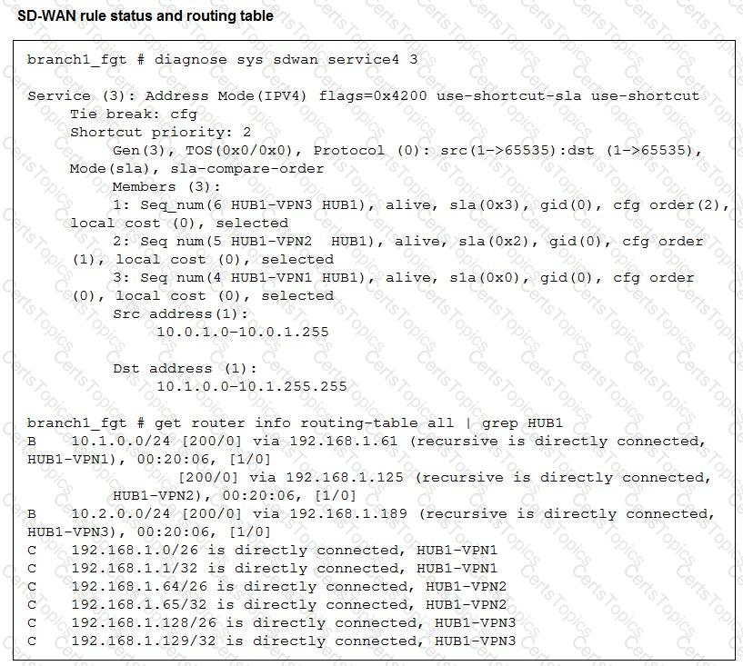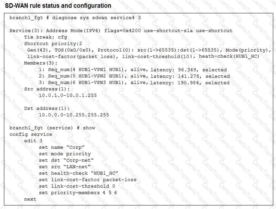 Immediately after the log messages are displayed, how will the FortiGate steer the traffic based on the information shown in the exhibits? Choose one answer.)