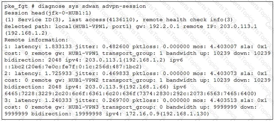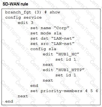 You configured an SD-WAN rule with the best quality strategy and selected the predefined health check, Default_FortiGuard, to check the link performances against FortiGuard servers.