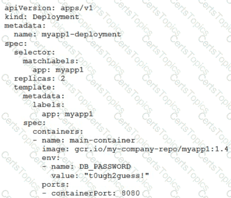 You need to refactor this configuration so that the database password is not stored in plain text. You want to follow Google-recommended practices. What should you do?