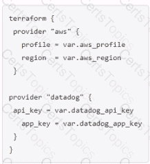 You ate creating a Terraform configuration which needs to make use of multiple providers, one for AWS and one for Datadog. Which of the following provider blocks would allow you to do this?