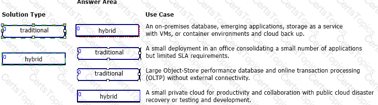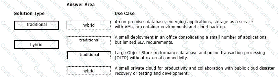 For each use case, identify whether it is a traditional solution or a hybrid solution.