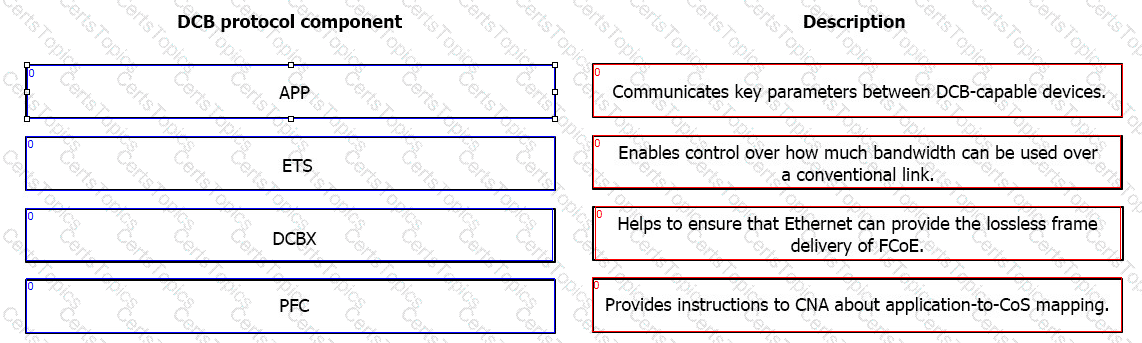 Match each Data Center Bridging (DCB) protocol component with its description.
