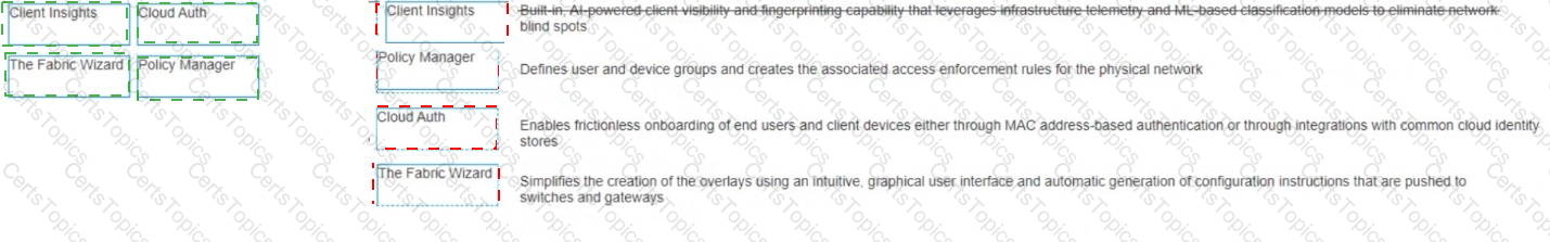 Match the solution components of HPE Aruba Networking Central NetConductor (Options may be used more than once or not at all.)