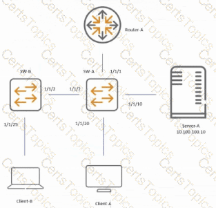 Client-A in VLAN 20, subnet 10.100.20.0/24