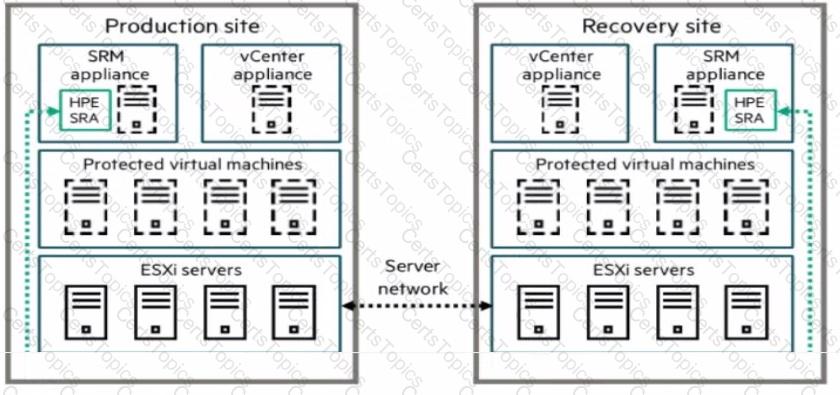A company is implementing a disaster recovery solution. The Asynchronous Remote Copy feature has been implemented between the HPE AUetra 9000 arrays at both sites. The customer Is interested in providing a disaster recovery (DR) solution that allows for business connectivity of their VMware VMs.