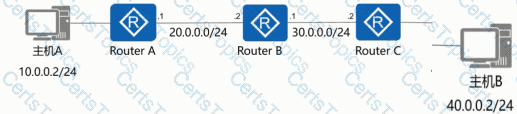 As shown in the figure, the administrator needs to test the network quality of the 20.0.0/24 CIDR block to the 40.0.0/24 CIDR block on Device B, and the device needs to send large packets for a long time to test the network connectivity and stability.