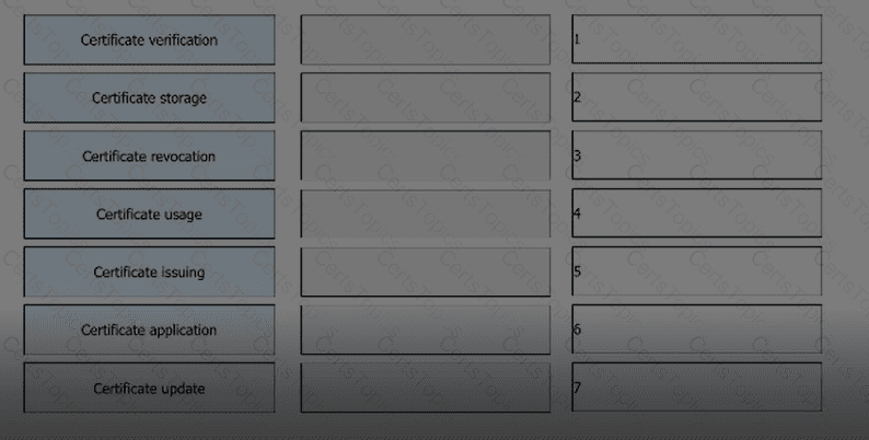 Arrange the following processes in the correct order based on the PKI lifecycle.