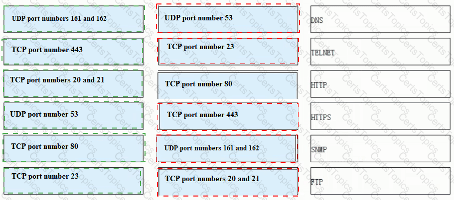 Match each of the following application layer service protocols with the correct transport layer protocols and port numbers.