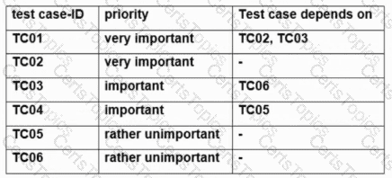 For each of the test cases to be executed, the following table specifies the priority order and dependencies on other test cases