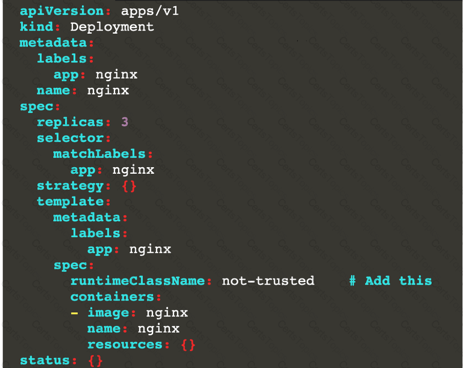 /home/cert_masters/mydeployment.yaml fixing two fields present in the file being prominent security/best-practice issues.