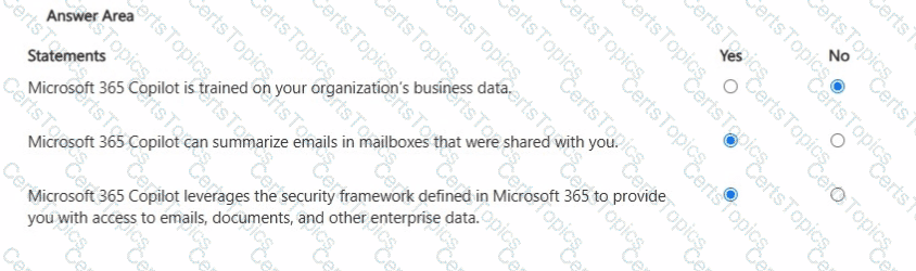 For each of the following statements, select Yes if the statement is true. Otherwise, select No.