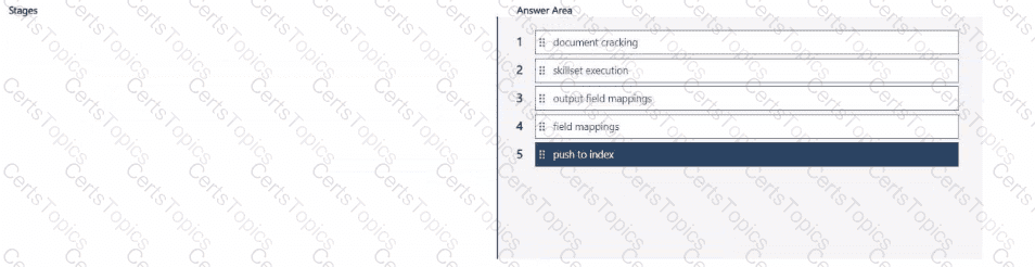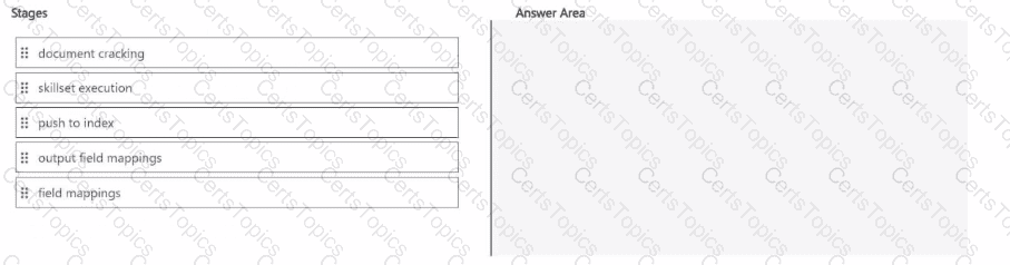 In which order will AS1 index the documents? To answer, move all indexing stages from the list of stages to the answer area and arrange them in the correct order.