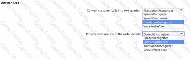 You are building an app that will answer customer calls about the status of an order. The app will query a database for the order details and provide the customers with a spoken response.